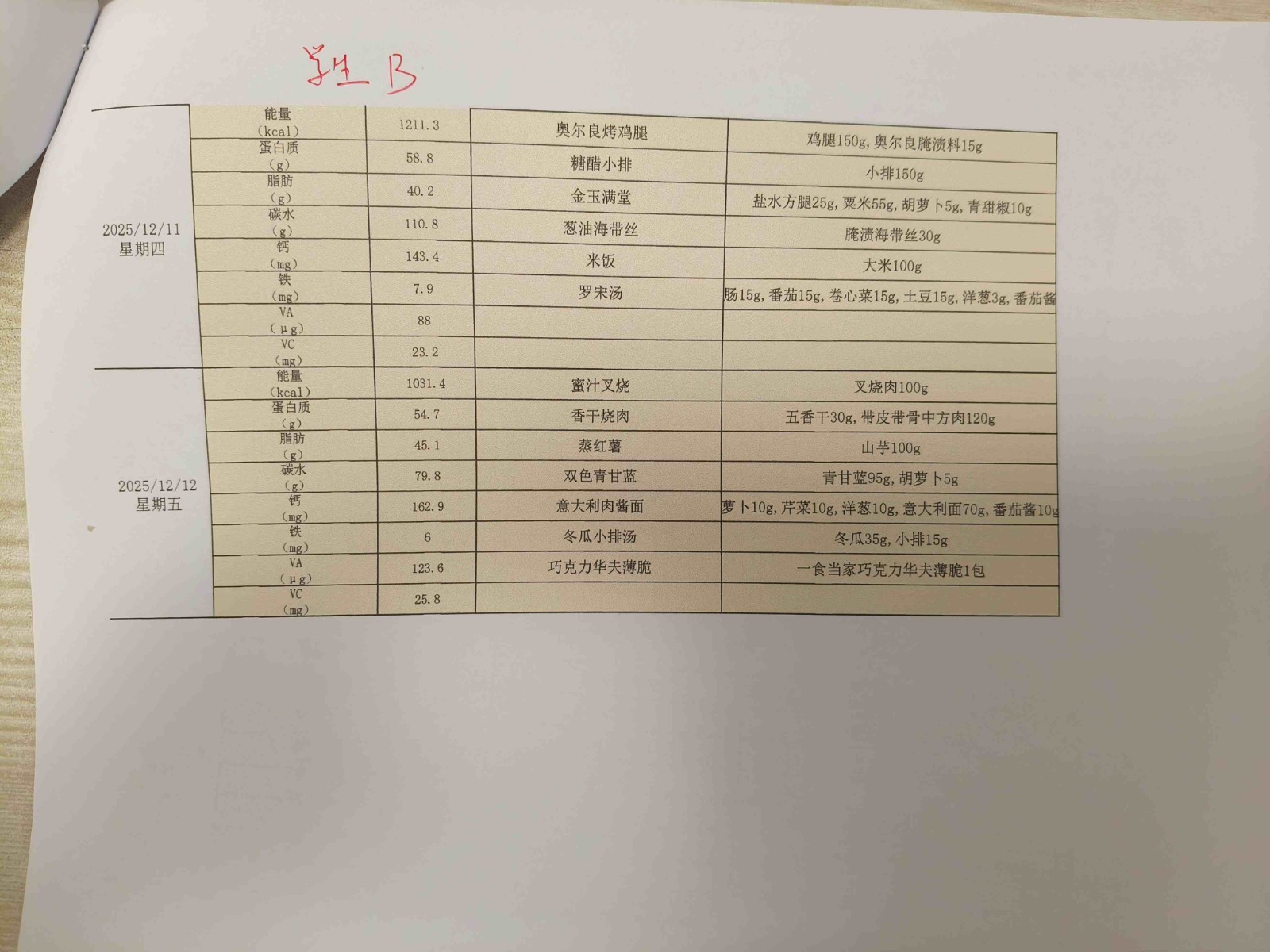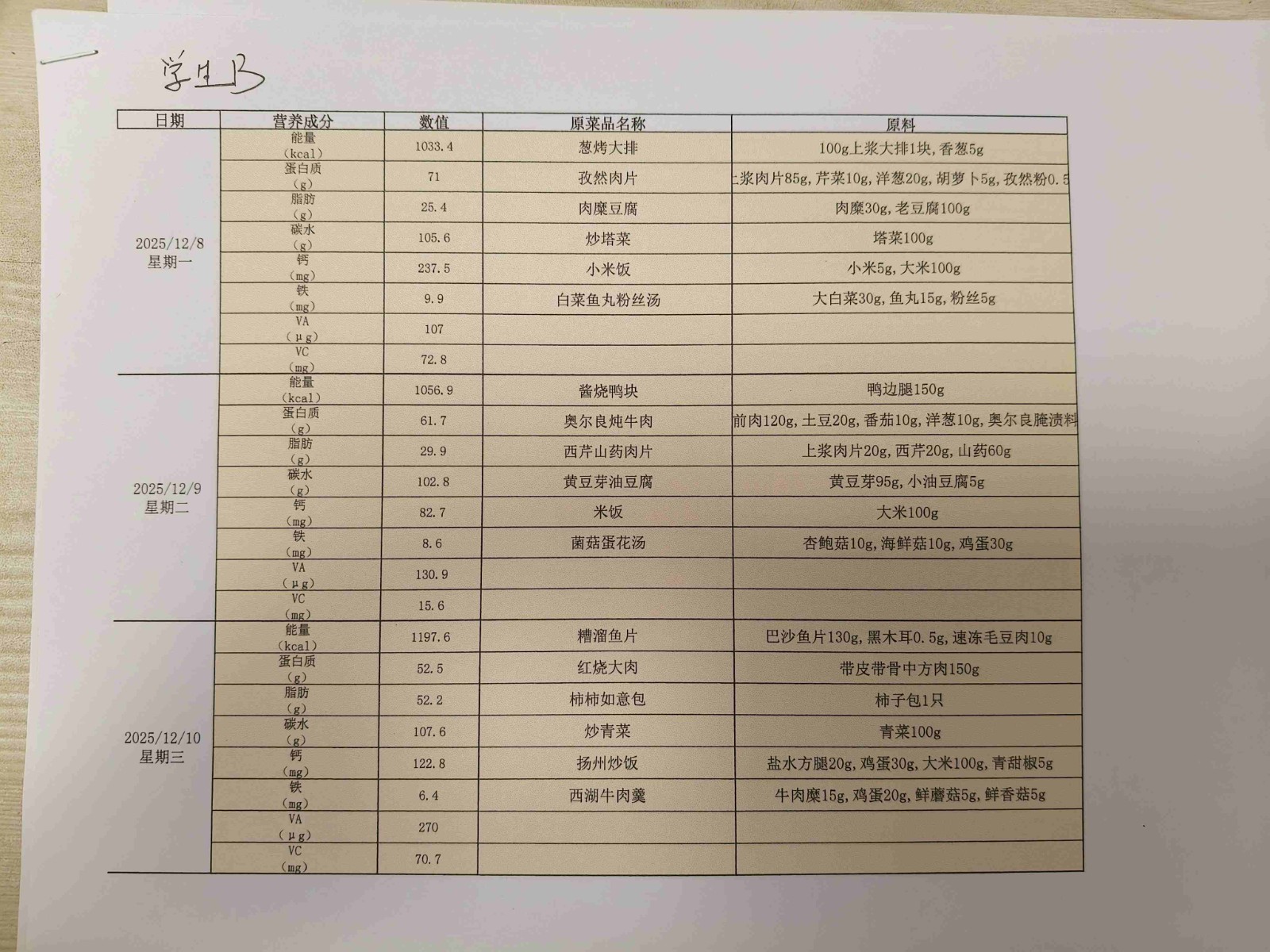 2025学年第一学期第十三、十四周学生菜单