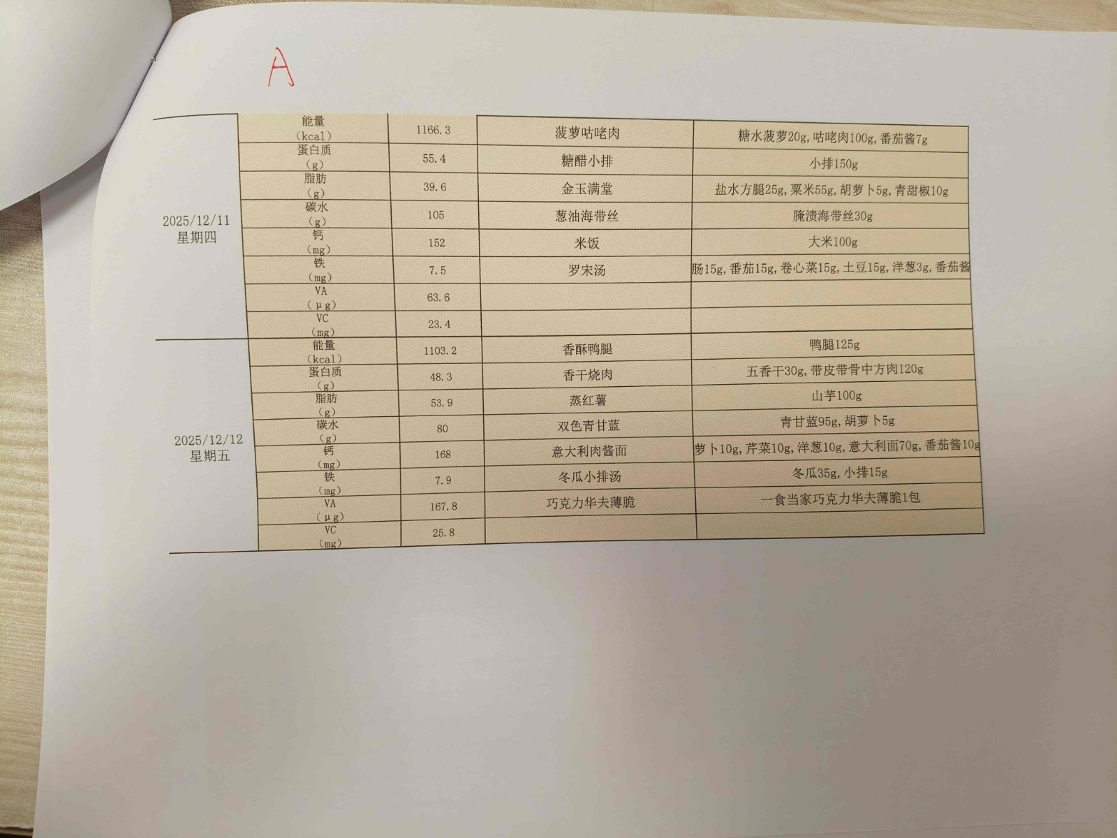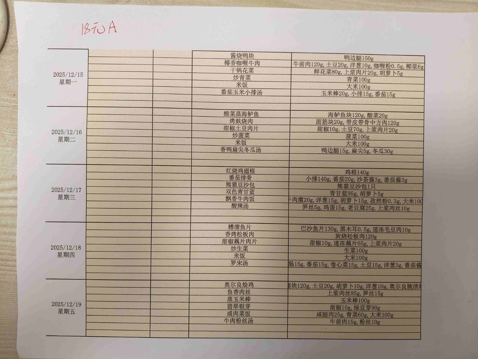 2025学年第一学期第十五、十六周菜单
