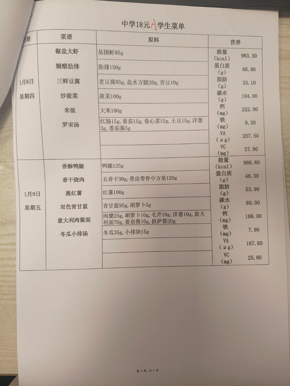2025学年第一学期第十七、十八周菜单
