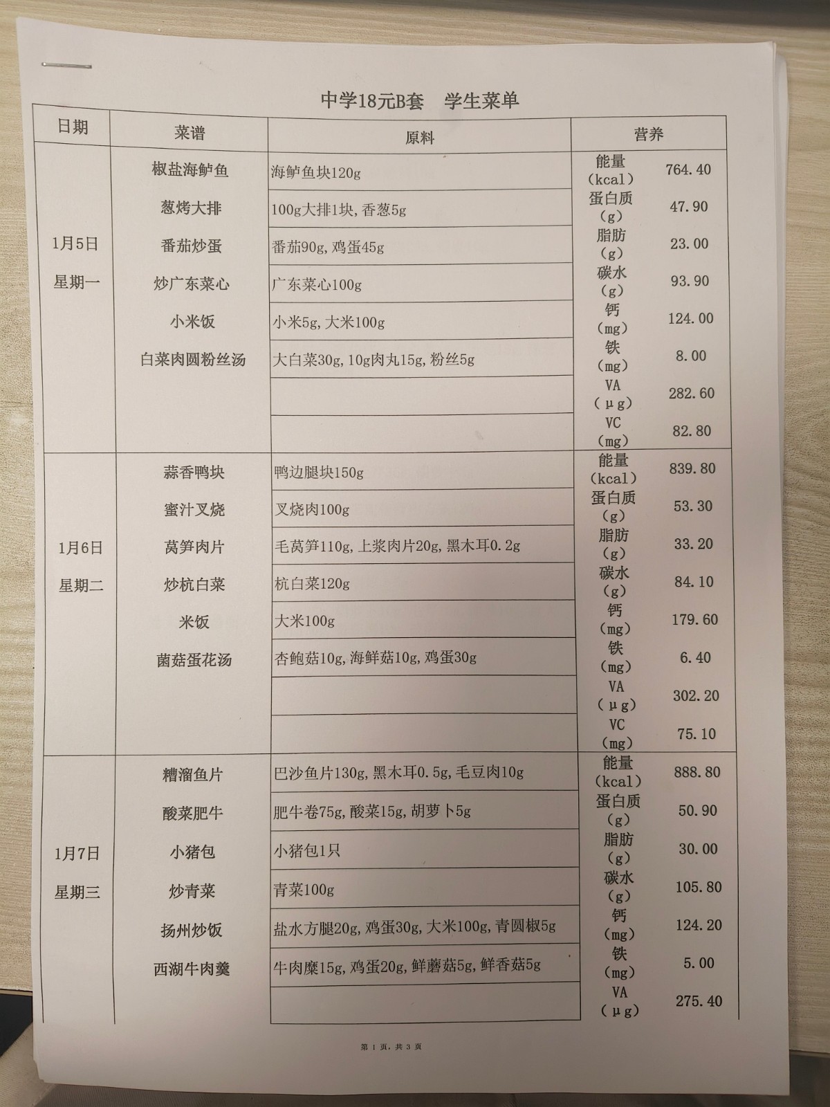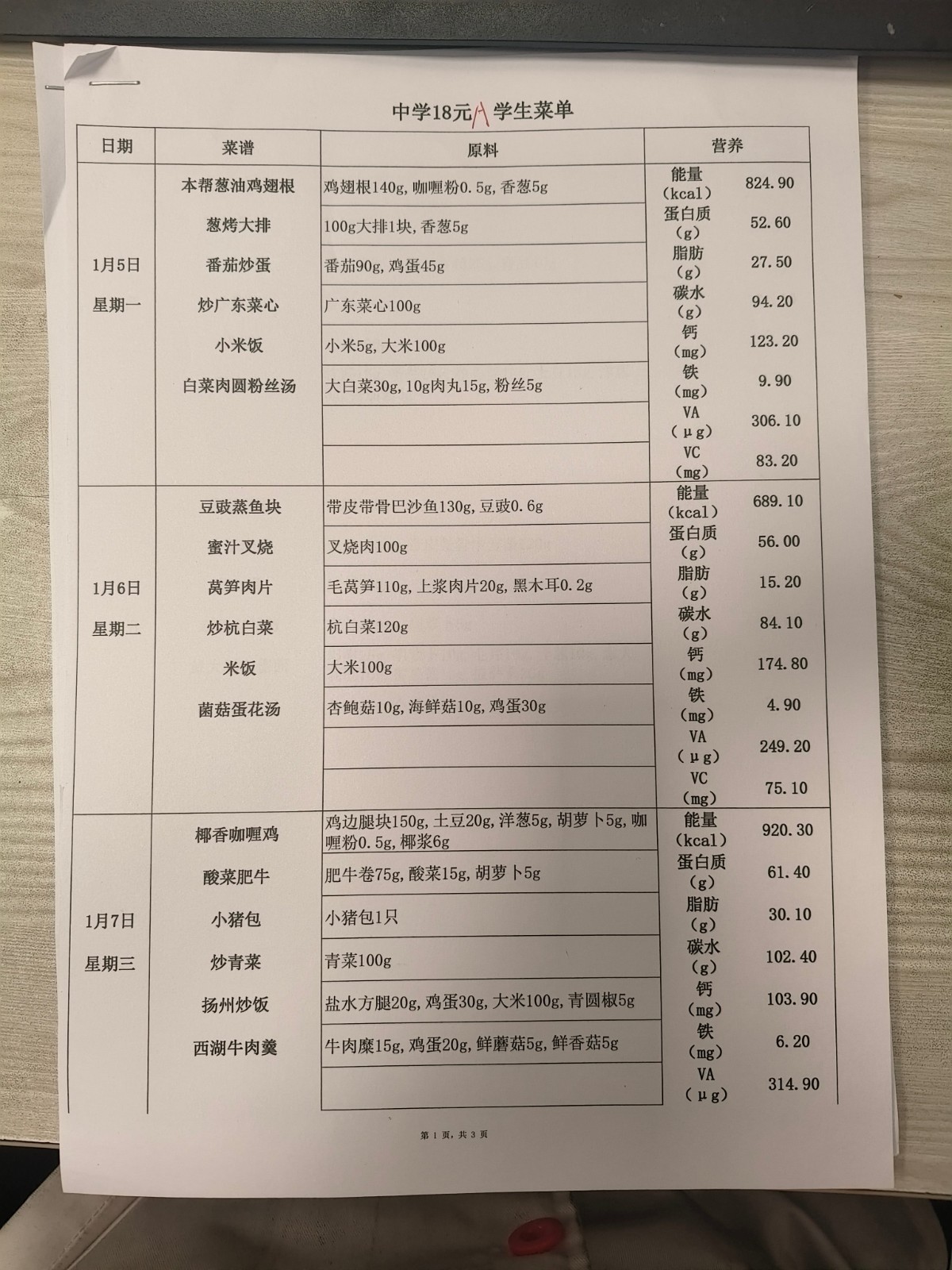 2025学年第一学期第三周菜单