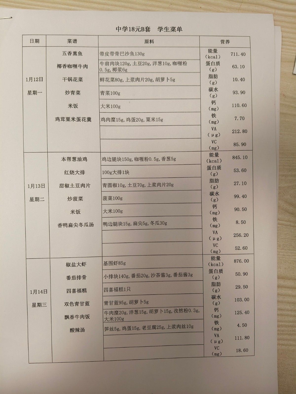 2025学年第一学期第十三、十四周学生菜单