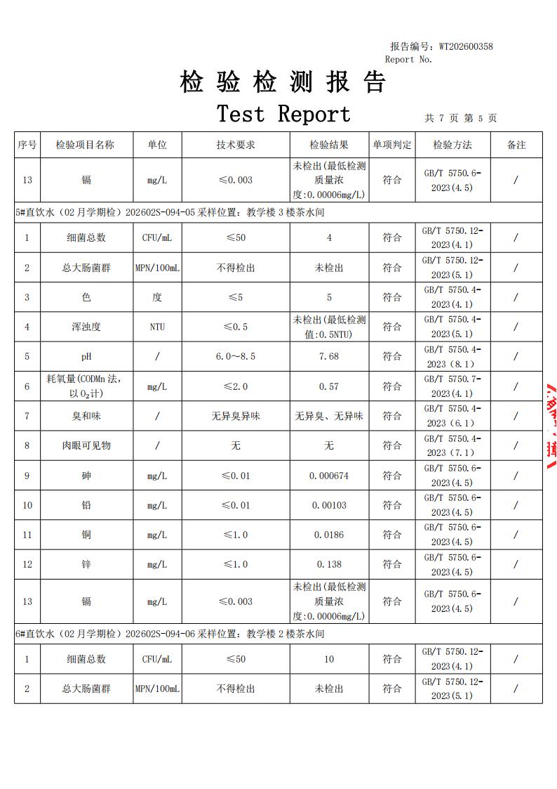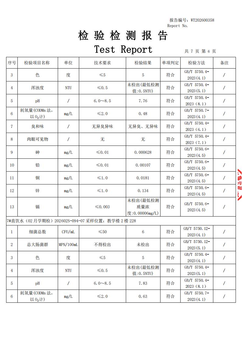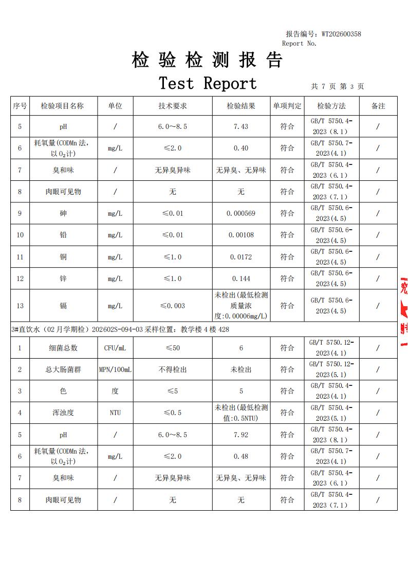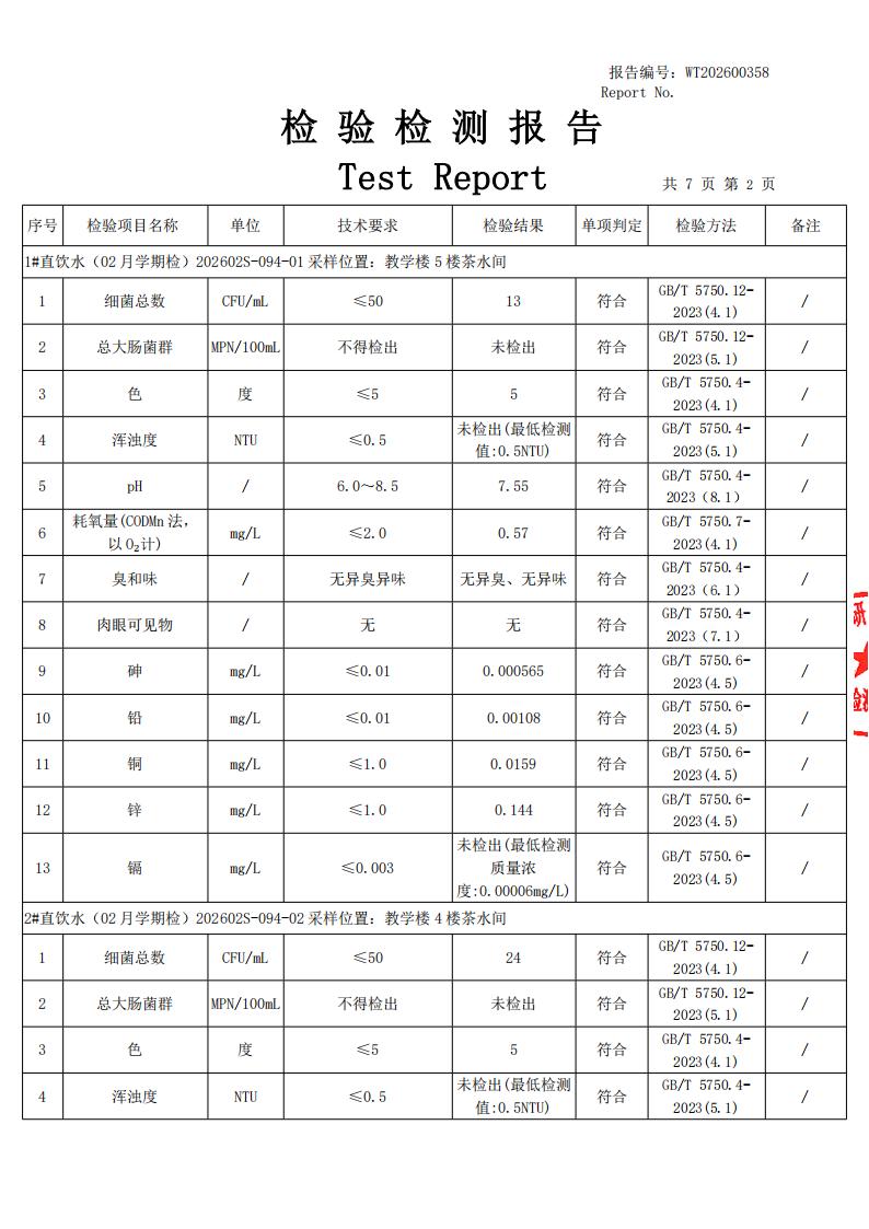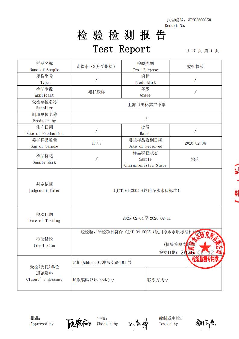 2026年田林三中直饮水报告2月学期检(漕东)