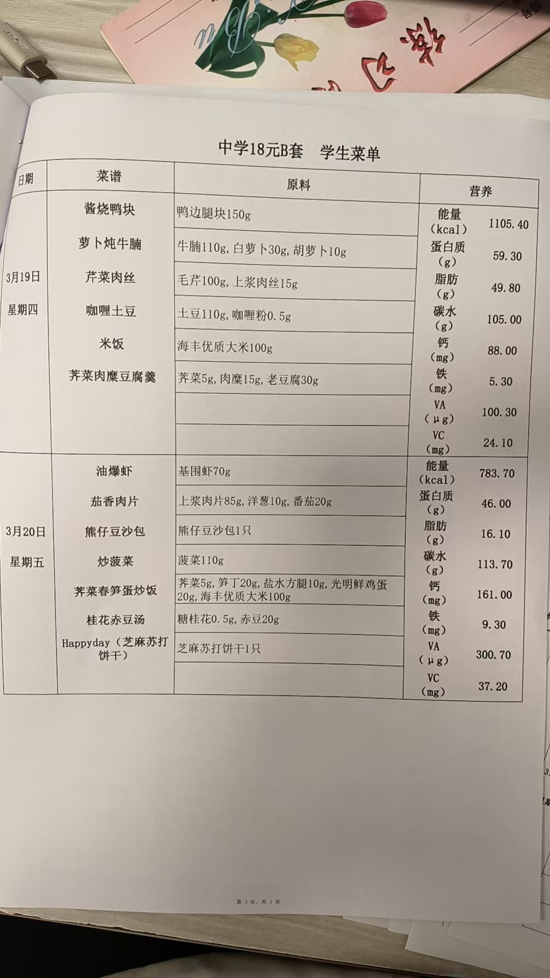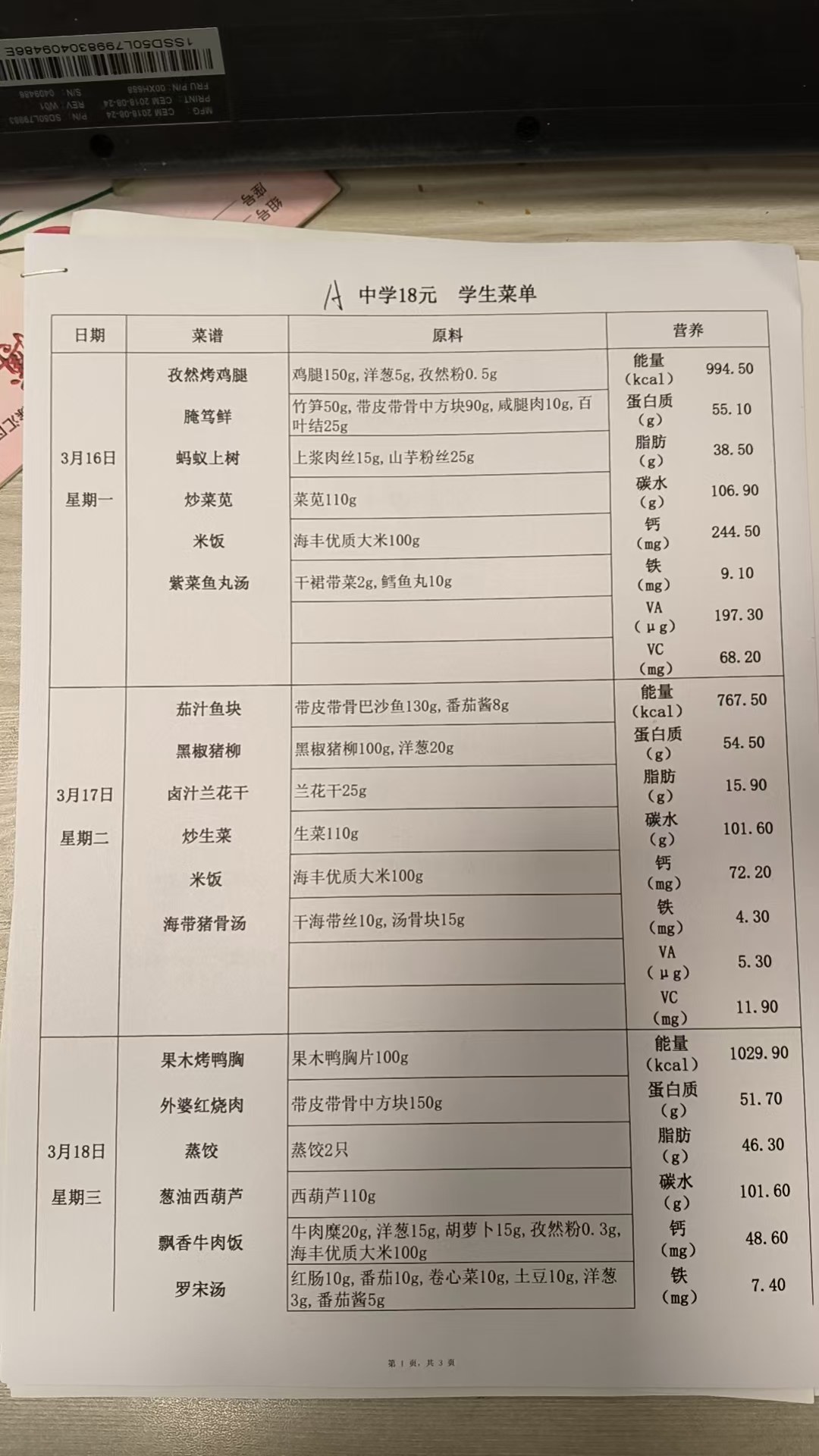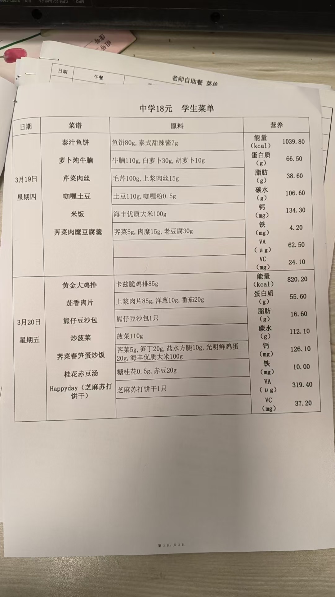 2025学年第二学期第三周菜单