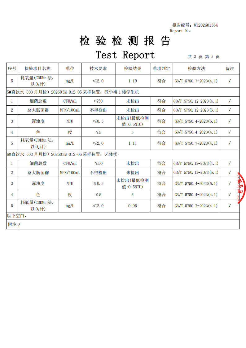 2026年田林三中直饮水报告3月检(田林)