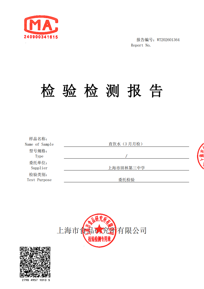 2026年田林三中直饮水报告2月学期检(漕东)